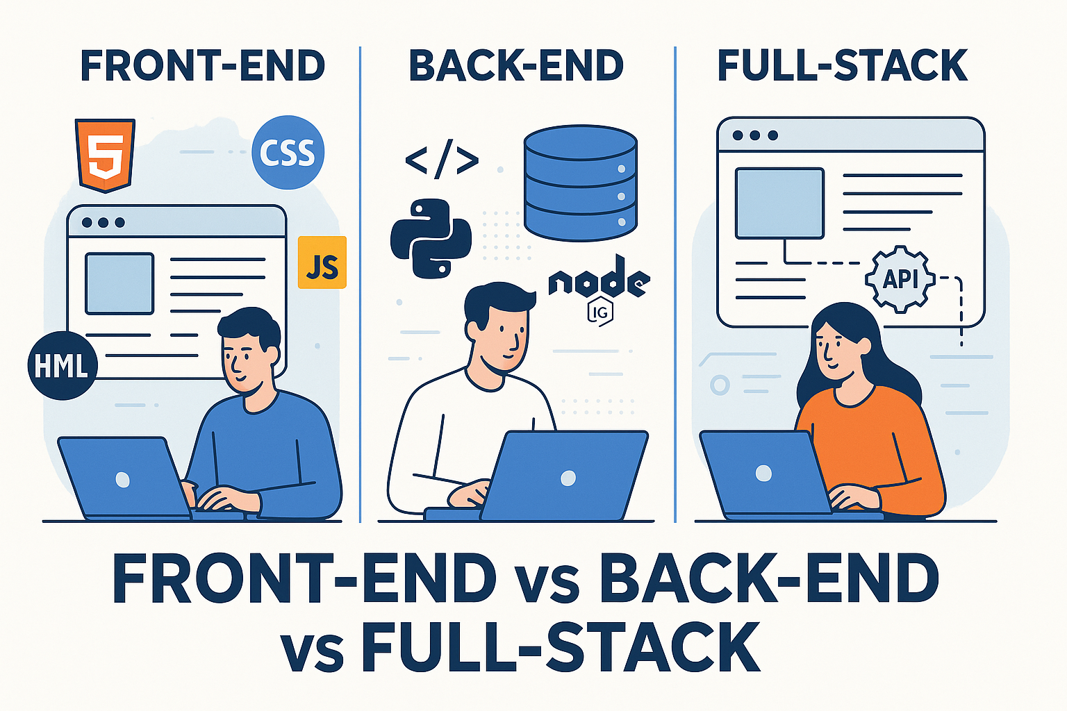 If you’ve ever browsed job listings or tried to understand how websites and apps are built, you’ve probably come across the terms front-end, back-end, and full-stack development. But what do they really mean? How do they differ, and where do they overlap?
